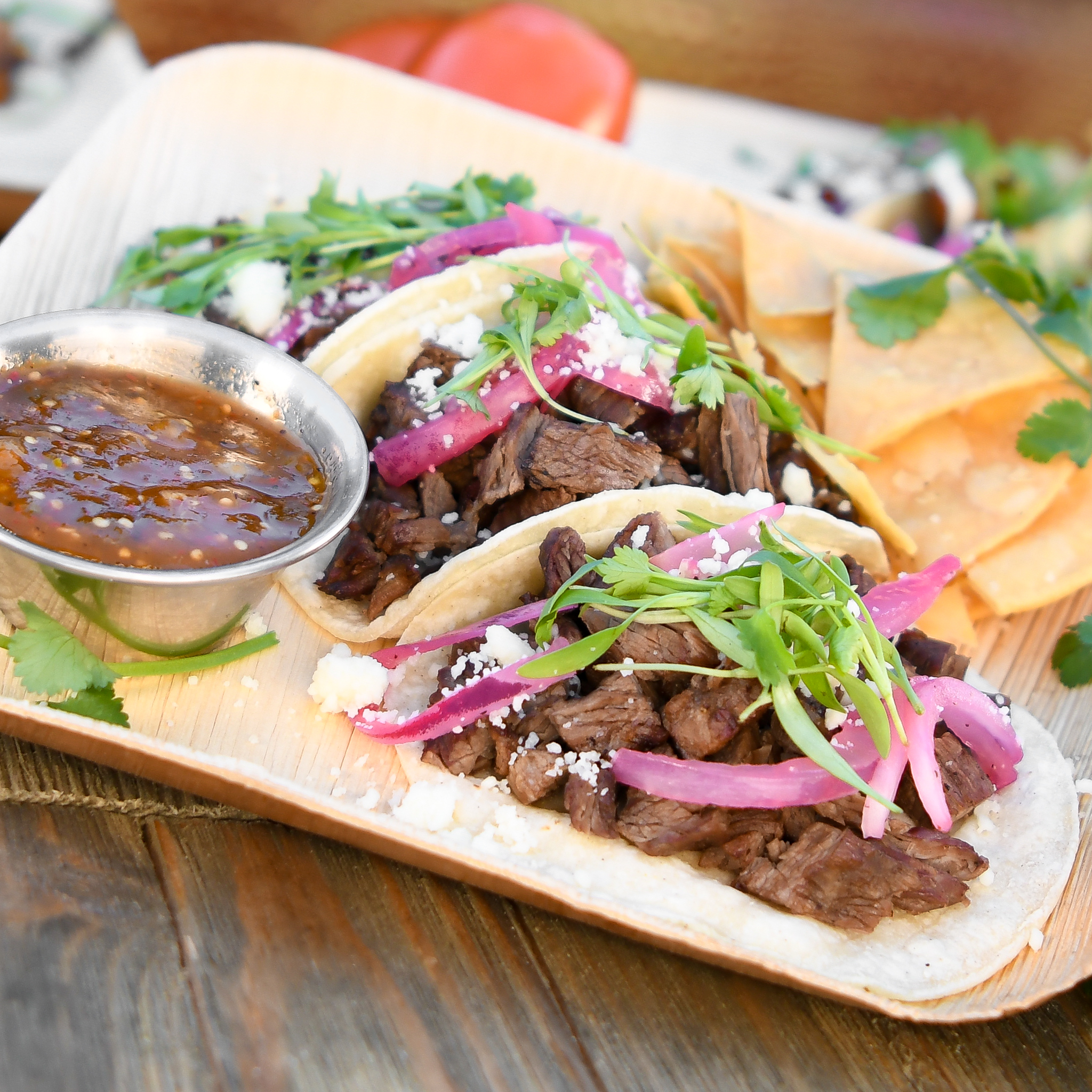 Skirt Steak | Pickled Onions | Queso Fresco | Micro Cilantro | Chile De Arbol | Corn Chips | Gluten Free | substitute Chicken
